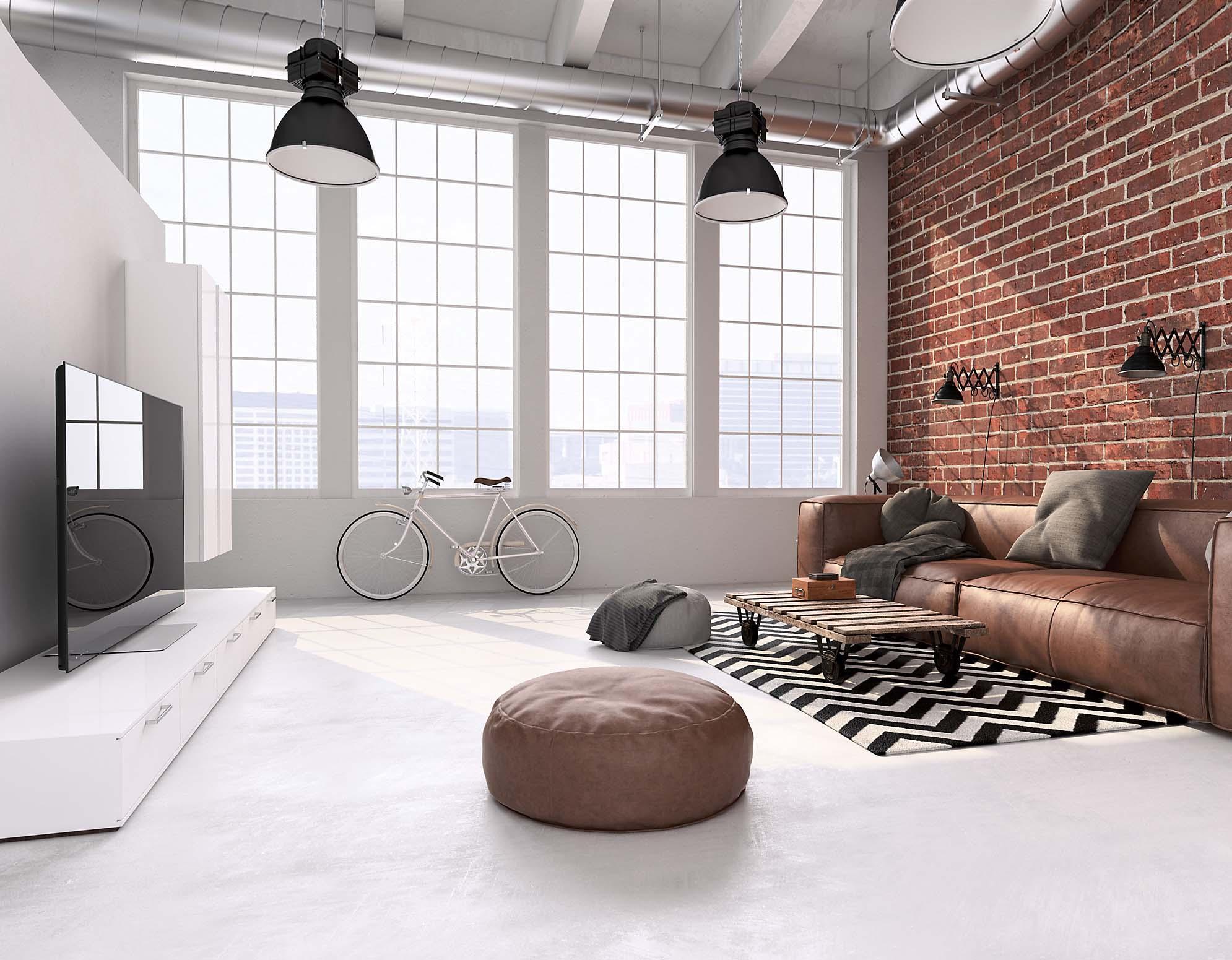 Если говорить о внутренней отделке, то лучшим выбором станут бетонные стены и открытая кирпичная кладка.