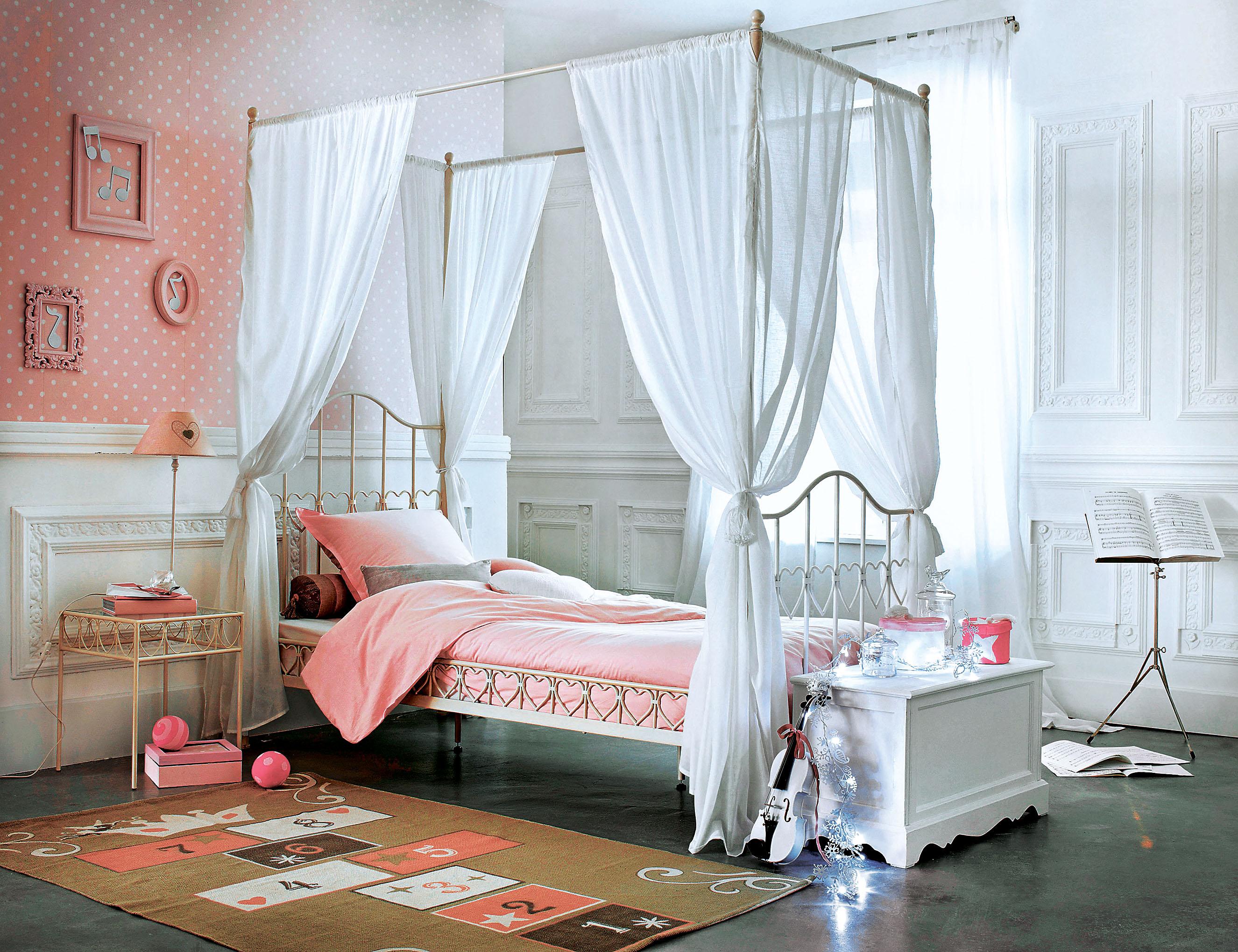 Чтобы изменить облик своей спальни, вовсе не обязательно затевать грандиозный ремонт. Новая кровать с балдахином и текстиль в белорозовых тонах превратят твою комнату в роскошные покои.