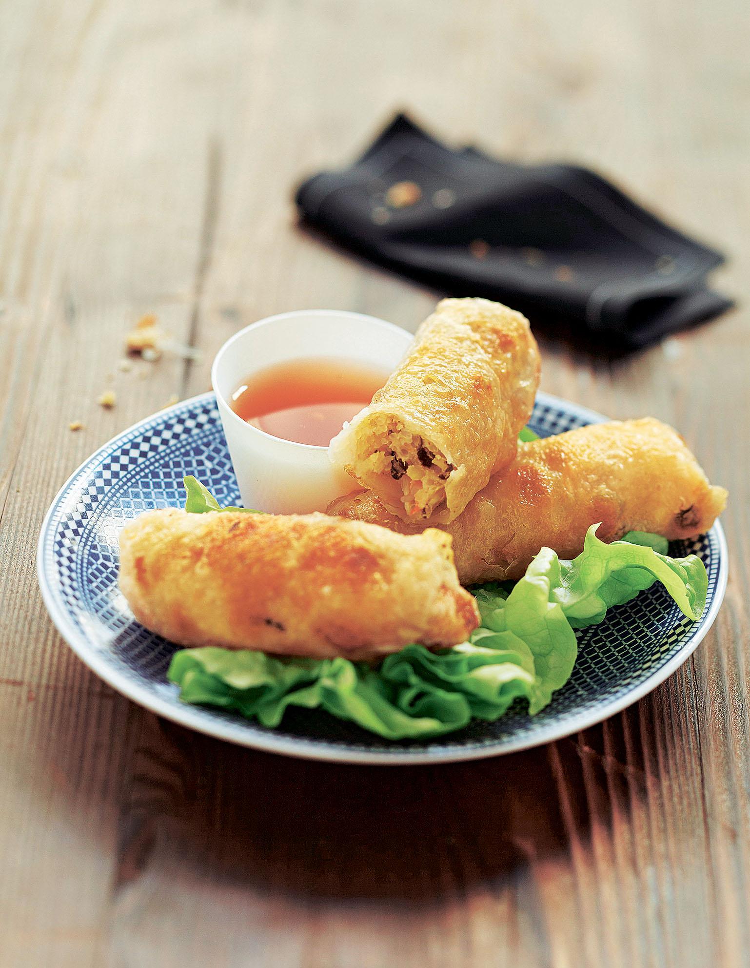 4 Листы рисовой бумаги по одному замочить в холодной воде на 1 мин, затем разложить на бумажных полотенцах. На каждый выложить приготовленную куриную начинку и свернуть так, чтобы она была полностью «запечатана». Роллы обжарить на оставшемся масле.