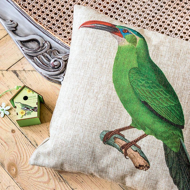 Натуральные ткани (лен, хлопок), изображение птиц, животных – «экологичность» такого декора прекрасно дополнит зеленый цвет. Подушка, ОБЪЕКТ МЕЧТЫ, 2000 руб.