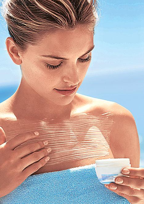 Чтобы кожа восстановилась после нескольких часов загара, ей нужно в среднем 4 дня. Представляешь, в каком стрессе она находится, когда ты отдыхаешь на море неделю! Поэтому после солнца обязательно пользуйся ночной косметикой с антиоксидантами, борющимися со свободными радикалами. Поскольку восстановление кожи происходит в ночные часы, такие кремы и сыворотки активизируют этот процесс и предотвращают фотостарение. Самые мощные антиоксиданты – это витамины С, Е и А. Они укрепляют естественный защитный барьер кожи, повышают ее иммунитет, сохраняют упругость за счет усиленной выработки коллагена и эластина. Помимо витаминов сильным антиоксидантным действием обладает косметика с коэнзимом Q 10 (это жирорастворимое вещество, содержащееся в клетках кожи и обеспечивающее естественную защиту от УФ-лучей) и экстрактом виноградной косточки. Стоит помнить, что кожа не только лица, но и тела стареет раньше времени от интенсивного загара. В первую очередь это заметно по состоянию рук, шеи и декольте, где самая тонкая и обезвоженная кожа: они становятся сухими и дряблыми. Помимо интенсивных питательных лосьонов будут полезны натуральные маски. Например, подтягивающая дрожжевая маска для зоны декольте. Столовую ложку обы чных дрожжей разведи теплым молоком до консистенции густой сметаны. Поставь на 40 минут в теплое место. Добавь 1 ст. л. оливкового или любого другого растительного масла и 1 желток. Взбей венчиком и нанеси на очищенную тоником кожу декольте. Через 20 минут смой маску водой. Для рук приготовь омолаживающую маску из пюре 1 персика и 1 ч. л. теплого молока. Нанеси ее на кожу на полчаса, укутав руки в полиэтиленовые перчатки.