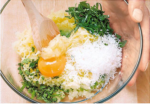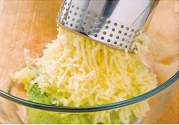 На 4 порции: 500 г цукини, 2 небольших клубня картофеля, 1 луковица, 1 ч. л. манной крупы, 4 ст. л. тертого сыра, 2 ст. л. рубленой зелени, 2 яйца, растительное масло для жаренья, соль, молотый черный перец