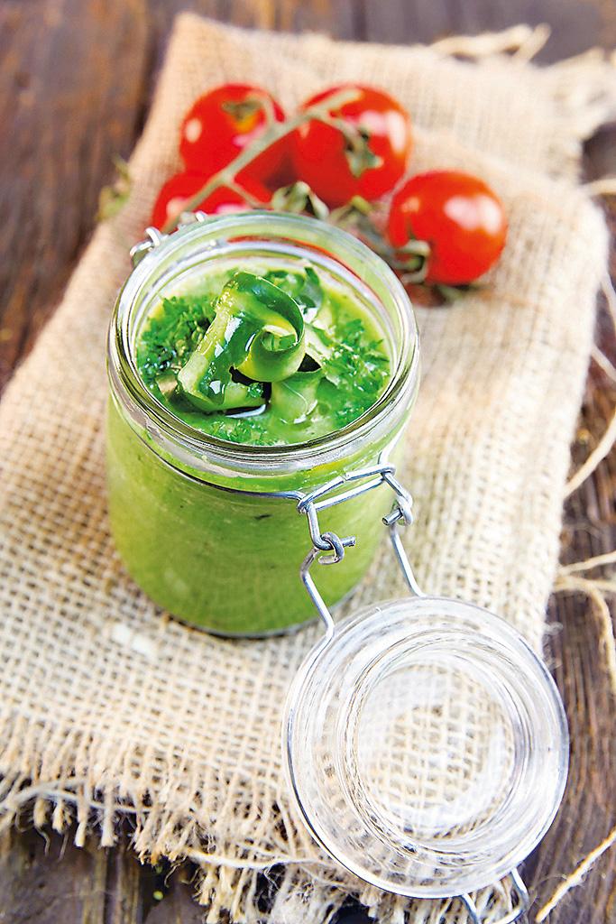 Творог перемешать с кефиром. Добавить цукини и петрушку, с помощью блендера сделать пюре. Посолить, поперчить и охладить в течение 1 ч.