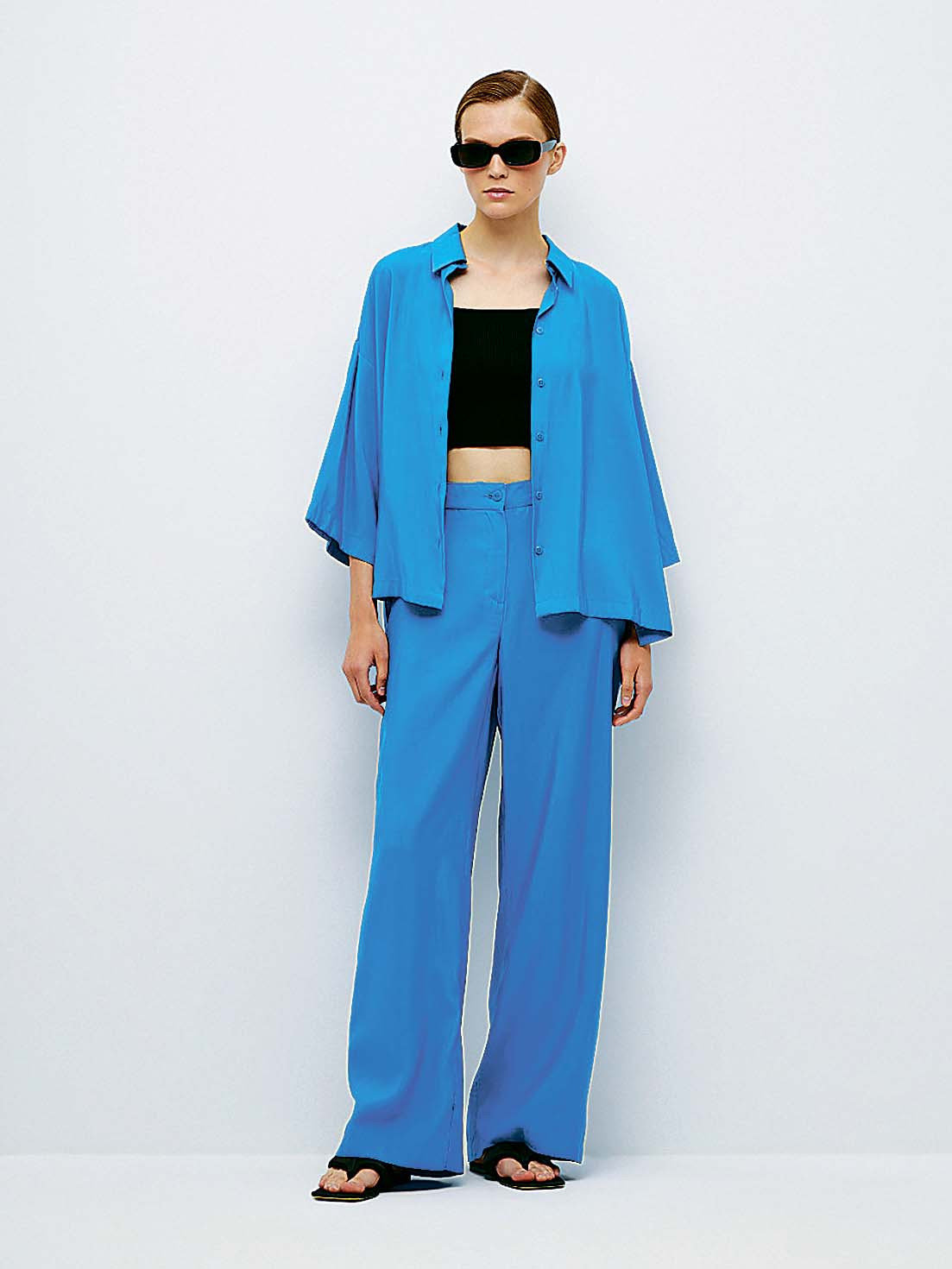 Если у тебя в офисе есть строгий дресскод, которому необходимо следовать, это не значит, что ты не можешь прибегнуть к хитрости. В отсутствии декольте удлинить шею помогут пара расстегнутых пуговиц на рубашке. Таким образом ты визуально прорисуешь V-образный силуэт, который приблизит к желаемому эффекту.