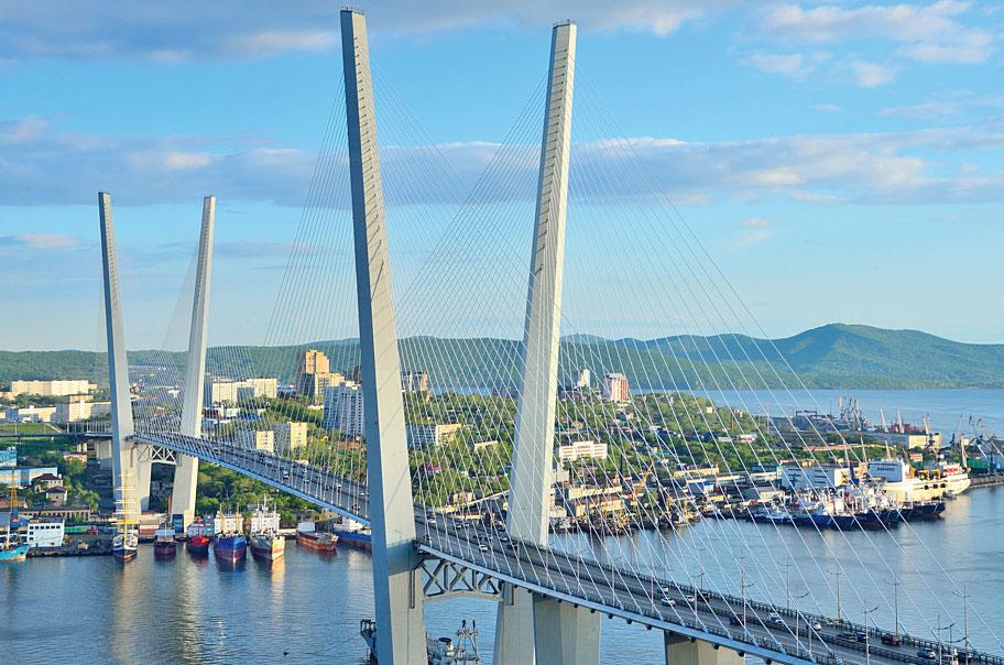 Какие же здесь разнообразные пейзажи! Сначала – порт и сотни кораблей, потом бухта Золотой Рог (привет Стамбулу!) и хайтековский вантовый Золотой мост (на фото). А дальше – мысы, сопки, живописные маяки и остров Русский. Особенной популярностью в августе–сентябре пользуются морские прогулки на закате.