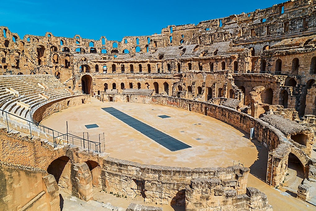 Еще один древний памятник – римский амфитеатр в Эль-Джеме. О нем знают не только любители истории, но и заядлые киноманы. Дело в том, что именно здесь снимался голливудский блокбастер «Гладиатор» с Расселом Кроу в главной роли.