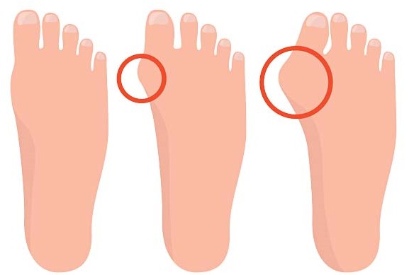 «Косточка» появляется из-за смещения головки первого плюснефалангового сустава большого пальца. Чем больше первый палец отклоняется от остальных, тем деформация заметнее.