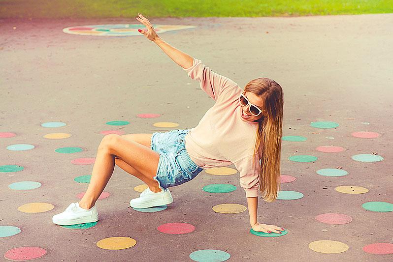 Игра появилась еще в 60-е годы XX в. и до сих пор популярна. В нее можно играть на природе, главное – выбрать мягкую поверхность. Рулетку возьми из обычного «Твистера» или сделай сама. Если есть специальный настил, как в детских площадках, цветные круги можно нарисовать мелом. А на траве – краской на водяной основе. За красоту газона не переживай, дождь со временем смоет все следы.