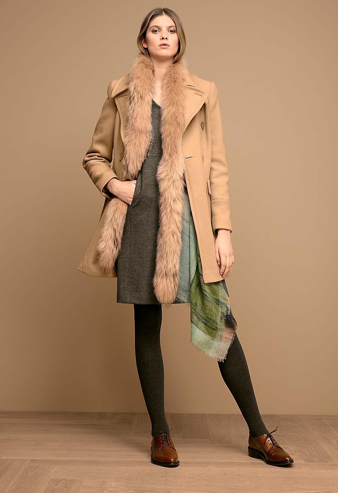 Пальто средней длины уместно ноcить с юбкой либо короче, либо на три сантиметра длиннее, при этом голенище сапога полностью закрывает ногу.