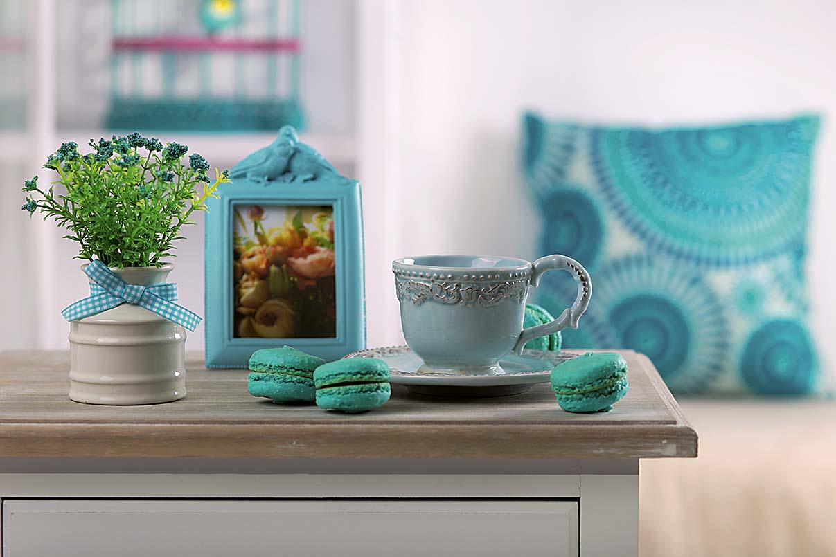 Посуда из голубой керамики особенно органично смотрится в ретроинтерьерах.