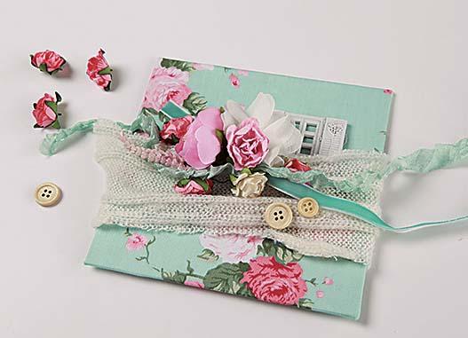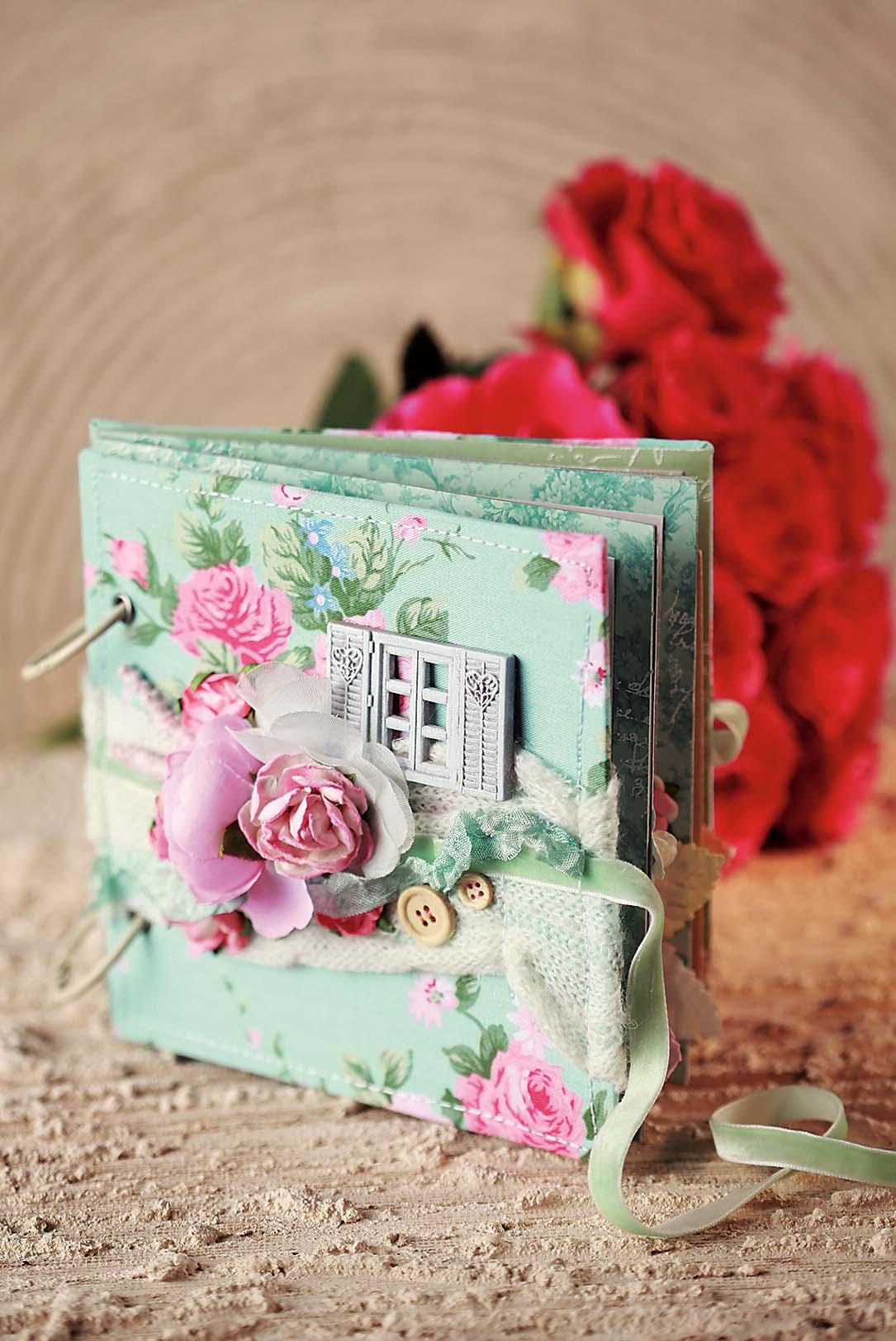 Внутреннюю сторону обложки и внутренние страницы оклей скрап-бумагой и декорируй цветами, бусинами.