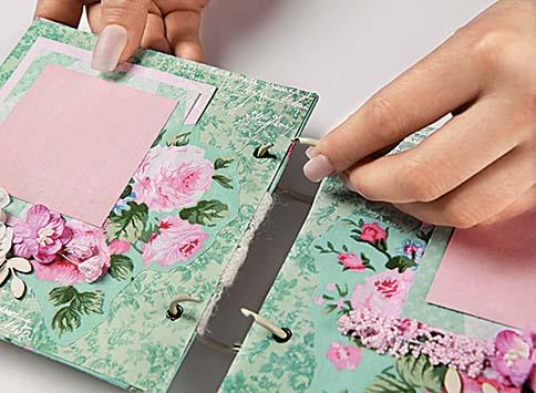 Вставь в отверстия соединительные кольца и надень на них все страницы альбома. Закрой кольца.