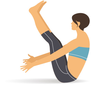4. Сядь на пол, ноги вытяни, расстояние между ними – 30 см. Руки расположи вдоль туловища, ладонями упрись в пол. На вдохе подними туловище так, чтобы колени находились под углом 90°, голова – параллельно полу. Должна быть ровная планка. Затем на выдохе медленно вернись в исходное положение.
