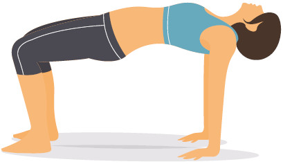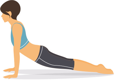 5. Ляг на живот, ладонями упрись в пол на уровне груди. На вдохе подними верхнюю часть туловища, руки прямые, подними верх таза. На выдохе вернись в исходное положение.