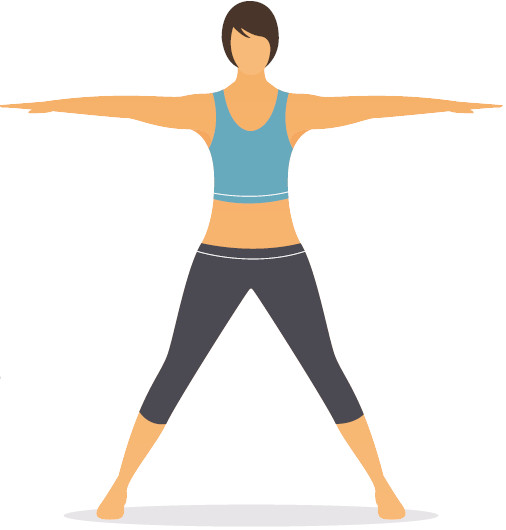 1. Встань на пол, выпрями спину, дыши равномерно. Ноги поставь на ширине плеч. Руки вытяни в стороны, ладони вниз. Далее по часовой стрелке сделай несколько кругов вокруг своей оси. Следи за собственным состоянием, чтобы сильно не закружилась голова. Начинать это упражнение можно с трех оборотов, затем с каждым разом, по мере привыкания, постепенно увеличивай количество.