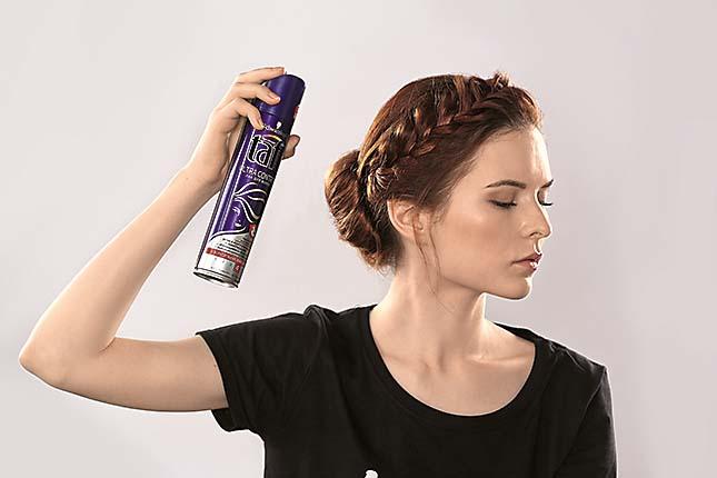 Сбрызни укладку лаком сверхсильной фиксации Taft Ultra с расстояния вытянутой руки.