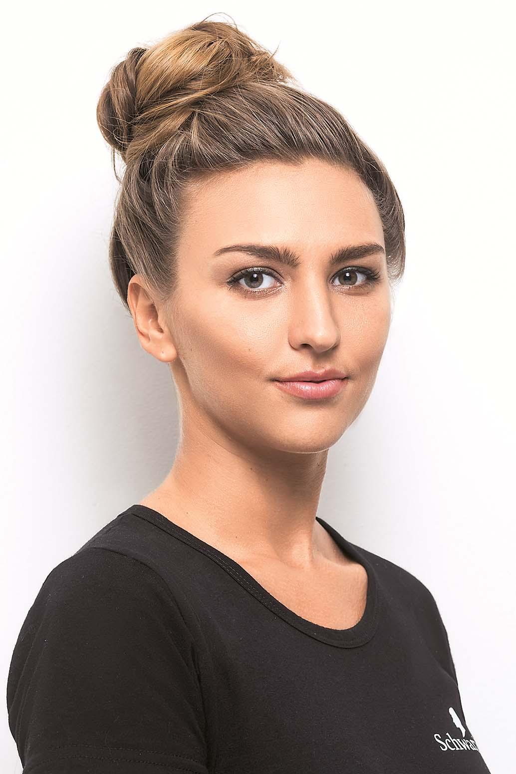 Обмотай косу вокруг пучка и заколи его со всех сторон шпильками и невидимками.
