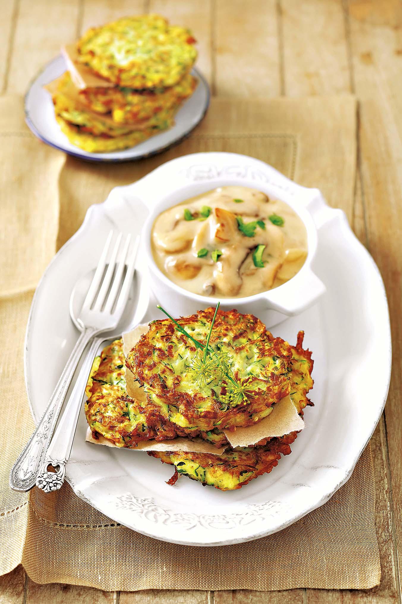 4. Приготовленную массу выкладывать ложкой на сковороду с горячим маслом и жарить до подрумянивания с каждой стороны. Оладьи подать на стол с грибным соусом.