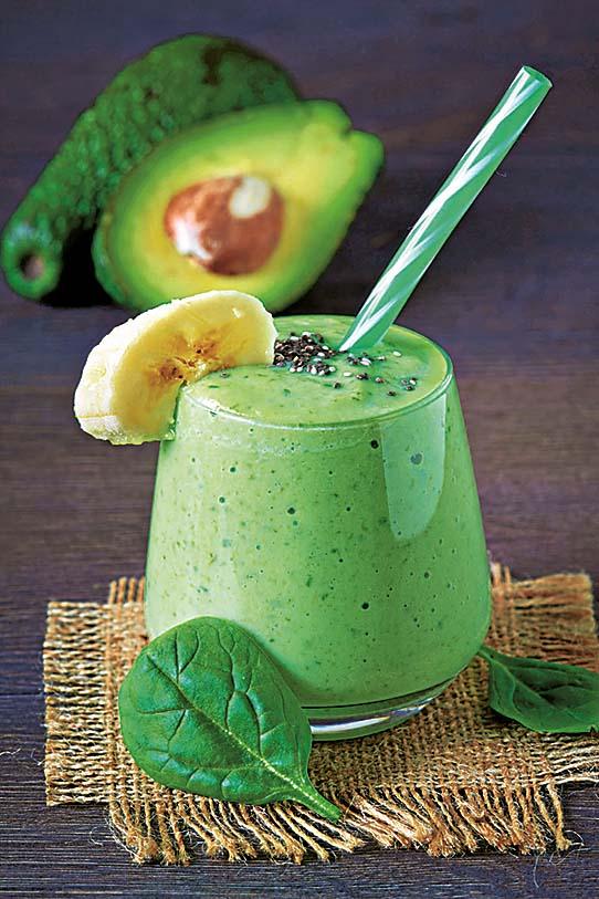 • 1/2 авокадо • 2 банана • 500 мл нежирного молока • 2 ч. л. чиа • щепотка корицы