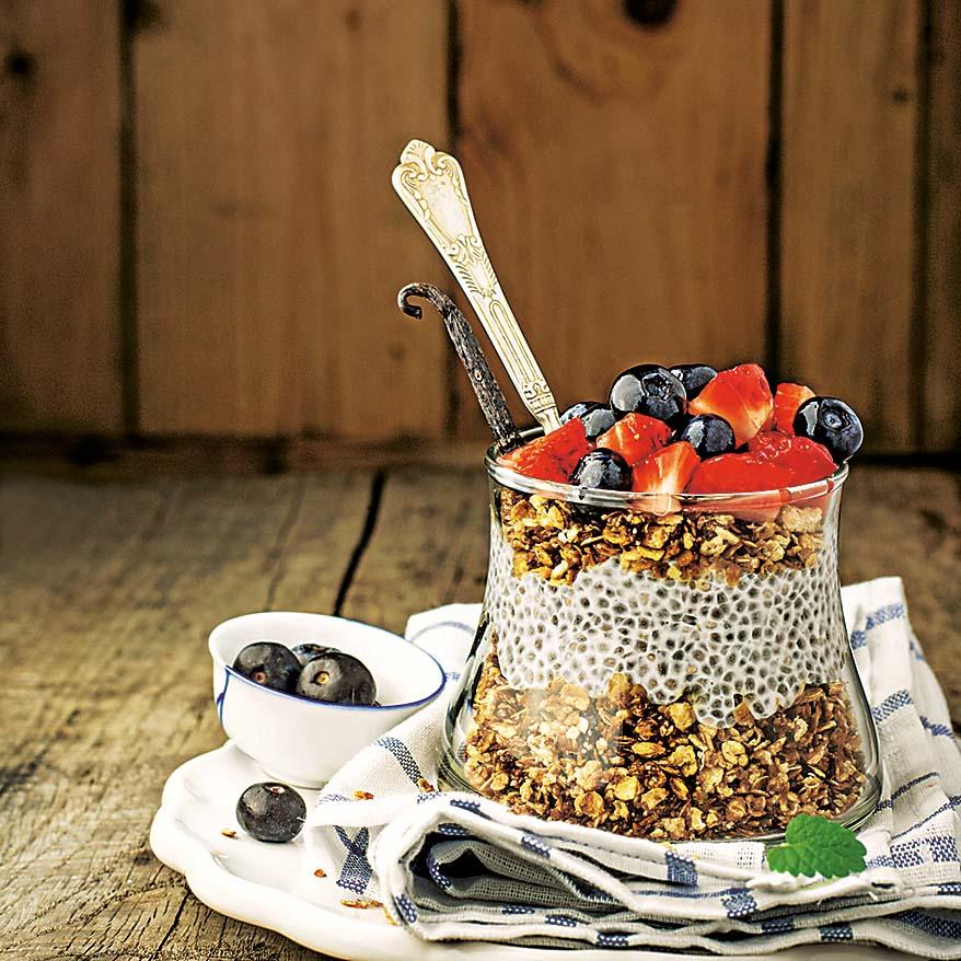 На перекус – йогурт с ягодами и семенами чиа (1 ч. л.)