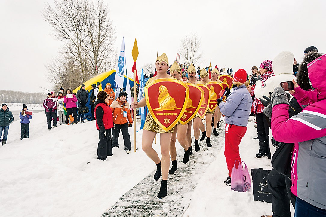 Гвоздь программы – соревнования по холодовому плаванию в проруби. Бывалые моржи превращают все в шоу: с эффектным выходом и смешными костюмами. В другом развлечении – большой зимней эстафете – участвуют всей семьей. Участникам нужно пройти со скандинавскими палками, на надувных лыжах и снегоступах, построить крепость из кубиков сена, метко бросить валенок.