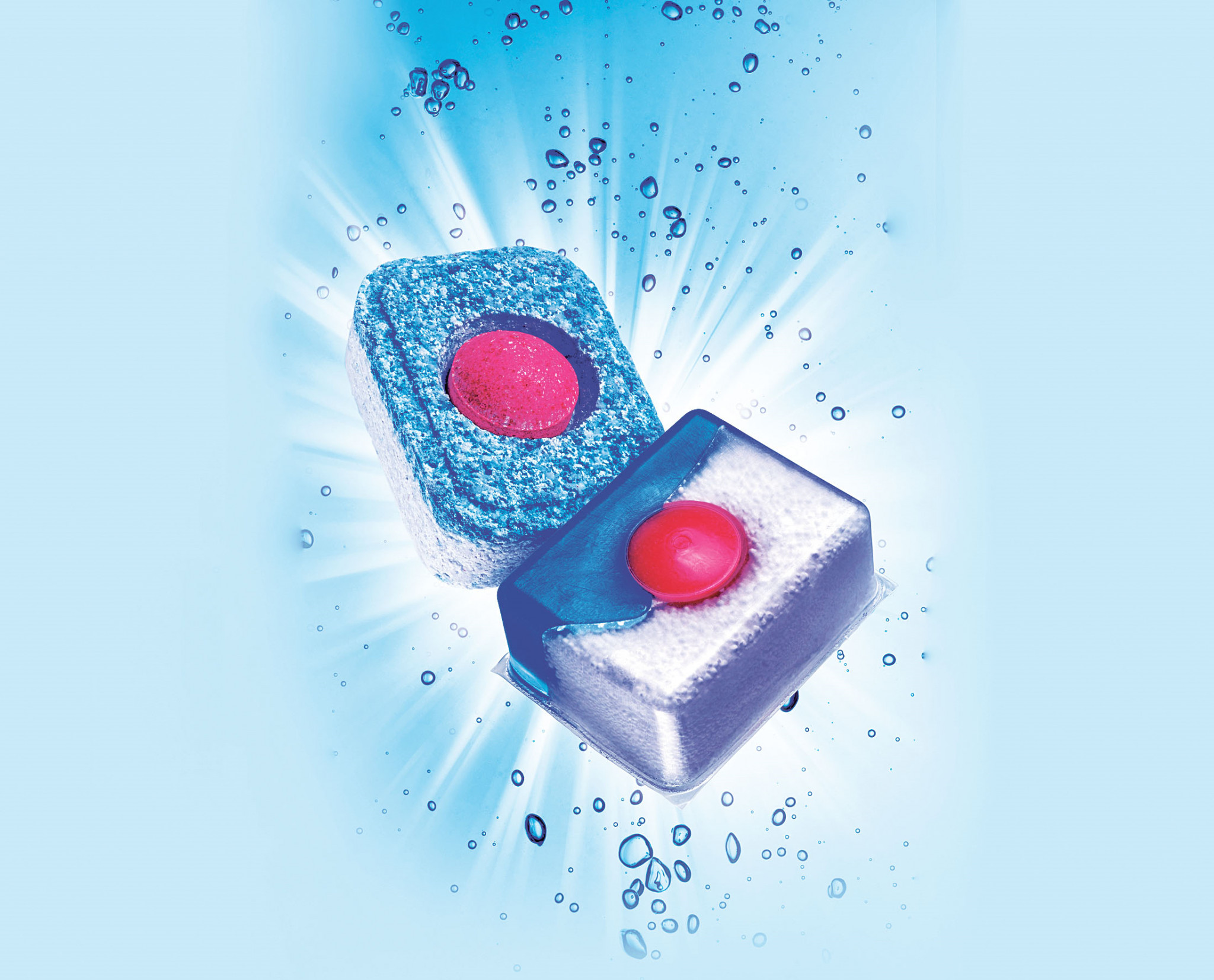 Средство для посудомоечных машин выглядит как маленький брикет овальной или прямоугольной формы – отсюда и название. В основе средства – моющие и ополаскивающие соли, которые растворяют жир. Дополнительные элементы смягчают жесткую воду, дезинфицируют и растворяют накипь. Например, фосфаты препятствуют образованию разводов от капель воды. Такие таблетки могут справиться не только с грязной посудой, но и выручат в других домашних делах.