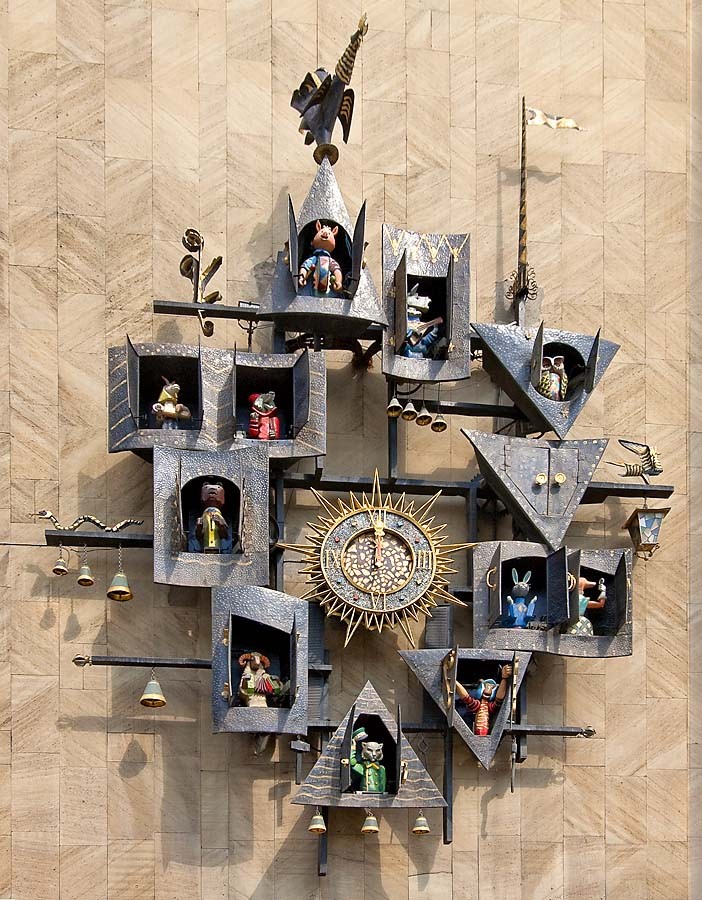 Для этого надо к полудню подойти к Театру кукол имени Образцова – кстати, крупнейшему театру кукол в мире! Когда сходятся стрелки на часах, которые висят на фасаде здания, из окошек вокруг циферблата появляются игрушечные обитатели домиков. Здесь медведь, коза, волк, лиса и другие, всем нам знакомые персонажи из сказок. Танцуют они под мелодию песни «Во саду ли, в огороде…». Дети приходят в восторг! Часы дают представление и в полночь, только звук делается потише.