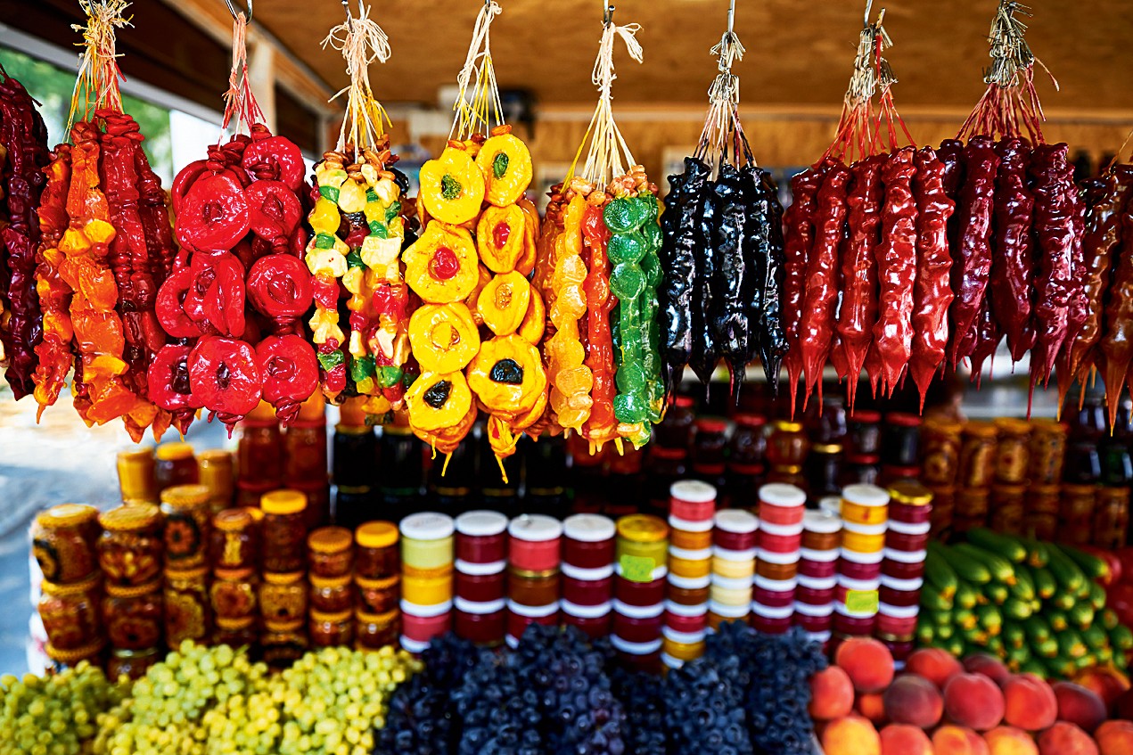 Ряды свежайшей многоцветной чурчхелы, развалы ароматных фруктов и специй, россыпи чаев, сверкающие на солнце банки с вареньем из фейхоа, грецких орехов, шишек и белой черешни – в общем, настоящее южное гастрономическое великолепие. Обязательно попробуй вяленую хурму – вкуснейший и очень полезный местный деликатес. Приходить сюда можно вместо обеда. Продавцы щедры: после многочисленных дегустаций ты вряд ли останешься голодной. И не забывай торговаться – здесь это увлекательный и азартный процесс.