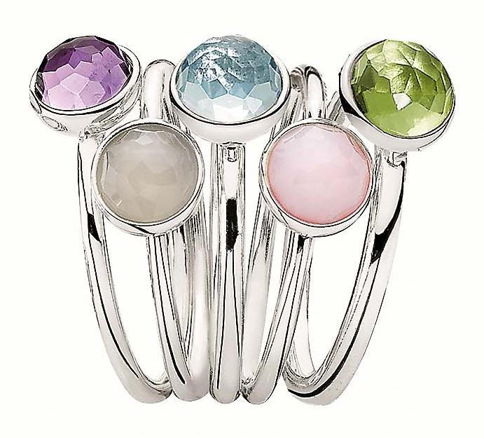 Кольца с разноцветными камнями-талисманами для каждого месяца от Pandora, например: любовь и удачу в пути принесет январский гранат; защиту – февральский аметист; красоту – мартовский кристалл цвета морской волны; терпение – апрельский горный хрусталь; гармонию – июньский лунный камень; счастье и отвагу – июльский сердолик... Все кольца Pandora идеально сочетаются между собой, поэтому ты сможешь составить свой «букет» из разноцветных камней, который к тому же станет и уникальным оберегом.