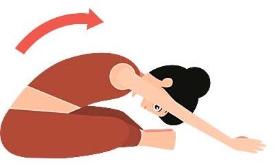 Сидя на полу в позе лотоса. Потянись вперед, стараясь коснуться головой стоп. Задержись в этом положении на несколько секунд. Повтори раз.
