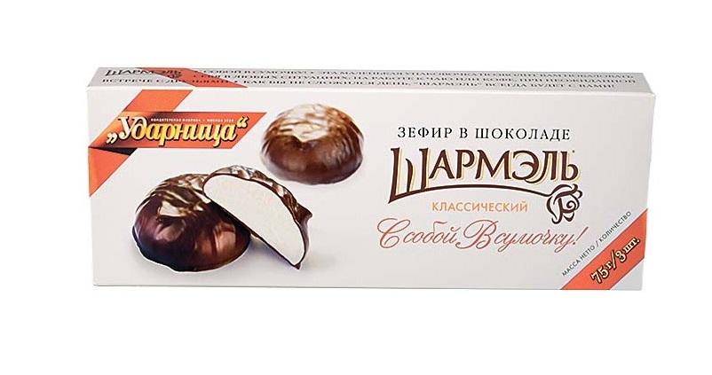 Позволять себе маленькие радости так приятно... «Шармэль» – легкие сладости, которые не содержат жиров. В их основе – только натуральные компоненты: яблочное пюре, яичный белок, а также агарагар – уникальное вещество, которое получают из морских водорослей. Зефир в шоколаде «Шармэль» от кондитеров фабрики «Ударница» покрыт настоящим шоколадом.