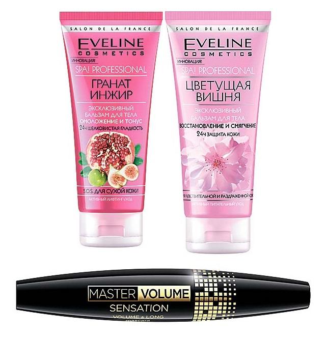Набор от Eveline Cosmetiks – питательные бальзамы для тела «Цветущая вишня», «Гранат и Инжир» и тушь для ресниц