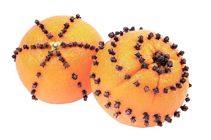 В качестве домашнего ароматизатора используй любые цитрусовые и пряности. Выбирай обладателя яркой толстой кожуры. Наметь ножом на его боках узор. Воткни по контуру в цитрус сушеную гвоздику. Аромат будет долгоиграющим, если «ежика» с корицей, ванилью, душистым перцем в бумажном пакете подсушить в духовке при низкой температуре. И солнышко готово! Выложи его в блюдо с елочными украшениями. Кстати, «светило» лучше мастерить с детьми.
