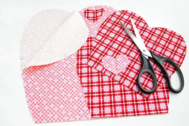 3. Вырезаем яблоки с припусками на швы по 1 см, а сердечки по контуру без припусков.
