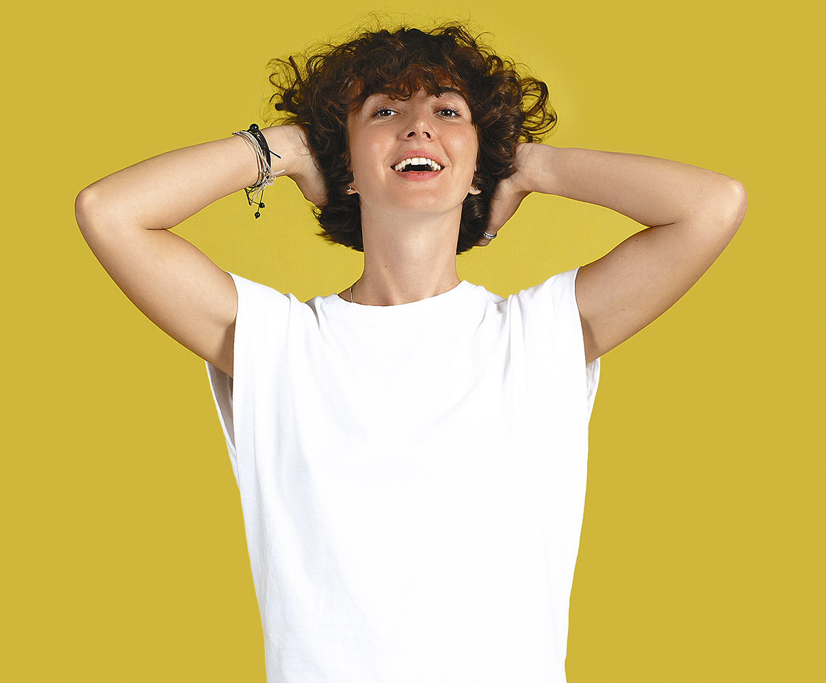 Обхвати ладонями грудную клетку под грудью. При вдохе подними грудную клетку, при выдохе слегка надави на нее руками, словно бы выдавливая воздух.