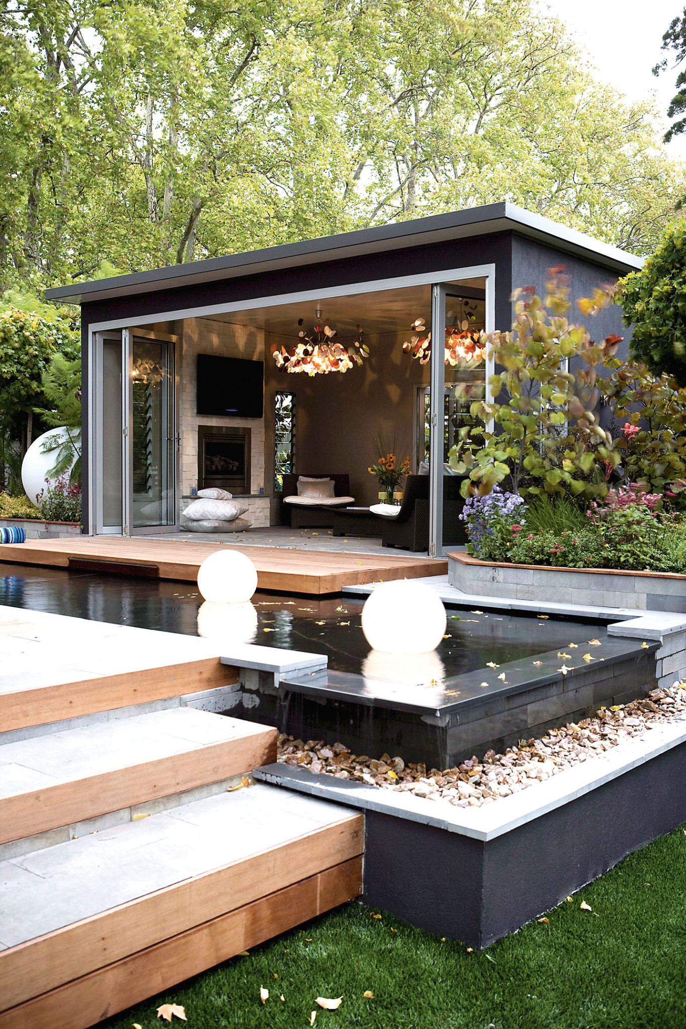 Главные герои японского сада – вода, камни и растения. Расположив эти обязательные элементы в строго определенном порядке, ты добьешься поистине потрясающего результата даже при минимальном использовании аксессуаров. Обязательный элемент декора – так называемый сад камней, его обычно устраивают на площадках неправильной формы. Булыжники и валуны символизируют скалы и острова, а рассыпанный вокруг белый гравий или песок – воду.