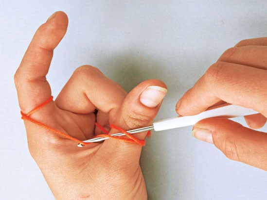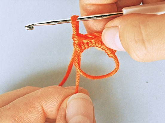 Возьми крючок и с его помощью захвати свободную нить (см. фото) – получится нитевидное кольцо.Из образовавшейся петли выполни еще одну воздушную.