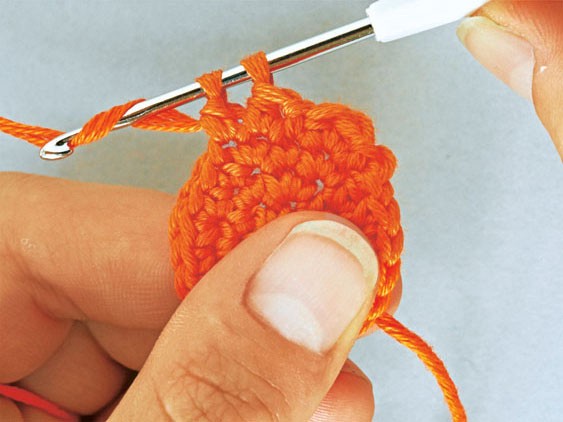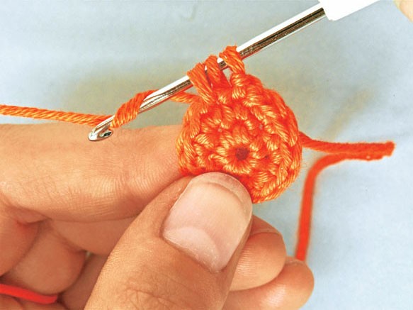 Теперь обвяжи получившееся кольцо, выполняя столбики без накида.