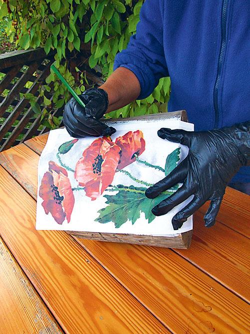 4. Изображение маков позаимствуй из книги или с открытки, увеличив его до нужного размера. Заштрихуй обратную сторону рисунка простым карандашом.