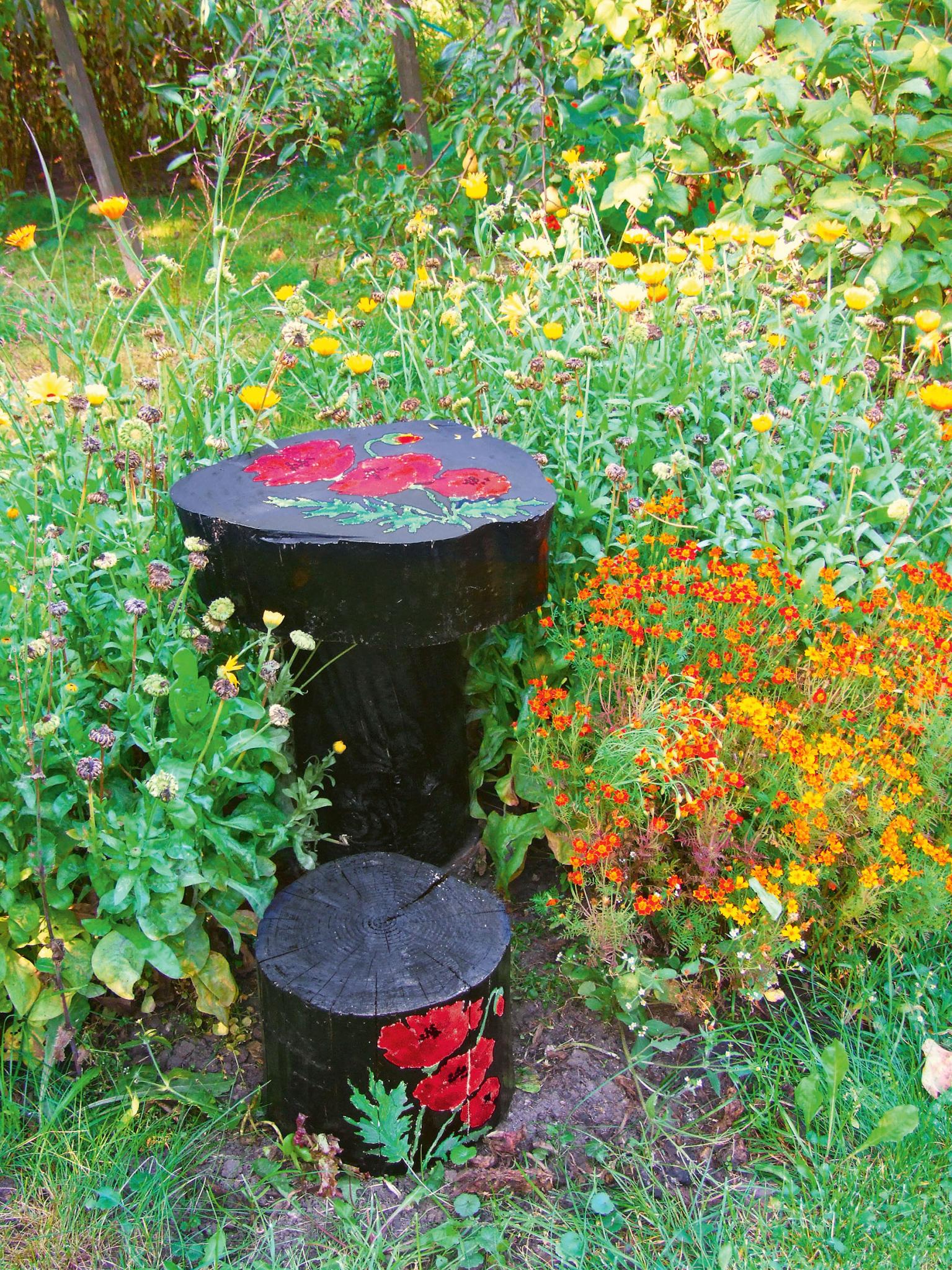 Узнай, как по велению кисточки старые пни могут превратиться в оригинальный набор садовой мебели!