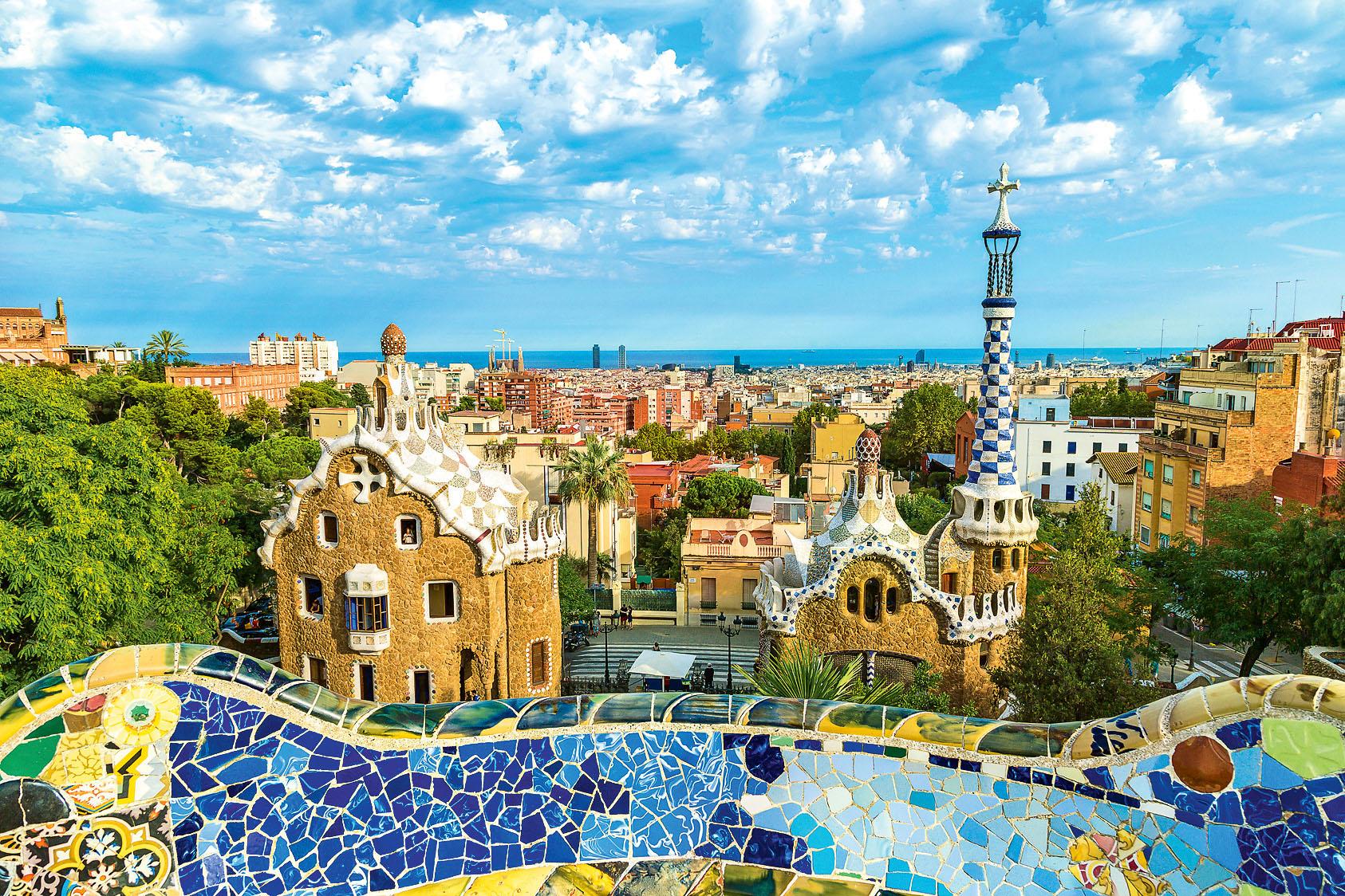 Без Гауди и здесь не обошлось. В парке находятся самые фотографируемые памятники города: «пряничные домики», необычная скамейка и скульптура дракона, украшенные мозаикой из осколков посуды и бутылок.