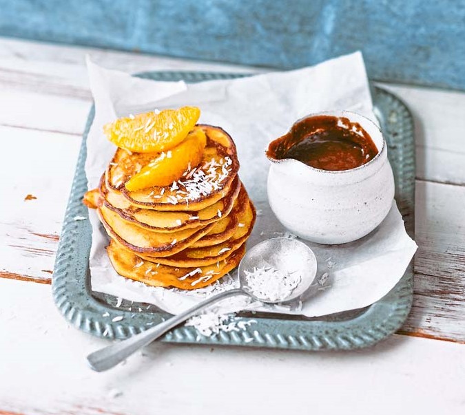 НА 2 ПОРЦИИ: • 1 банан • 1 ст. л. оливкового масла • 100 г коричневого сахара • цедра 1 апельсина • по 50 г кокосовой (рисовой) и кукурузной муки • щепотка ванилина • щепотка соли • растительное масло для жаренья