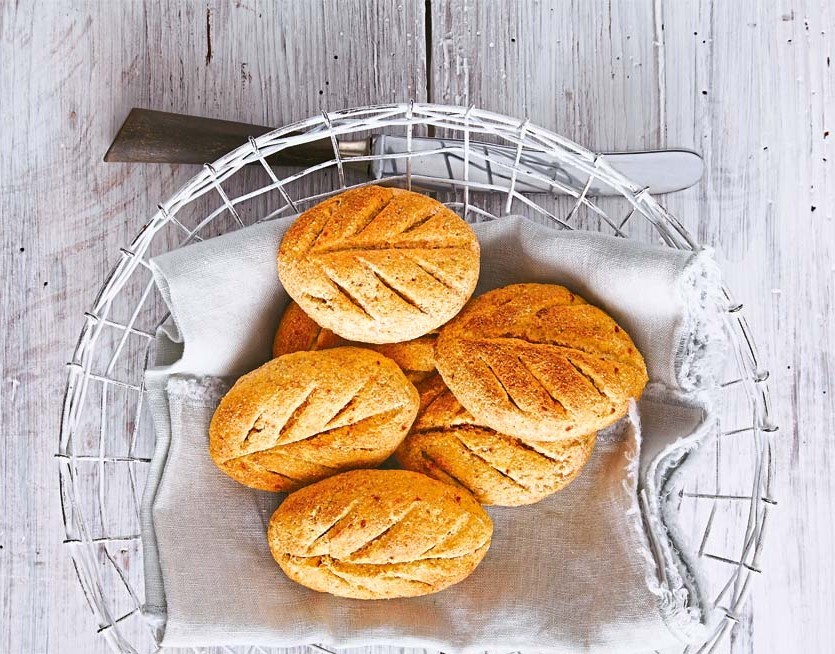 ПРИГОТОВЛЕНИЕ: Духовку нагреть до 180°. Все ингредиенты смешать в комбайне или блендере. Из получившегося теста сформовать овальные булочки (руки периодически смачивать водой). Выложить их на противень, выстланный пергаментом, и вилкой или деревянной палочкой нанести рисунок. Выпекать 45 мин и дать остыть.