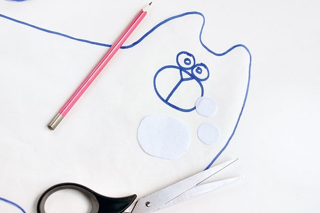 4. Из белого фетра выкрои два круга для глаз и овал для мордочки.