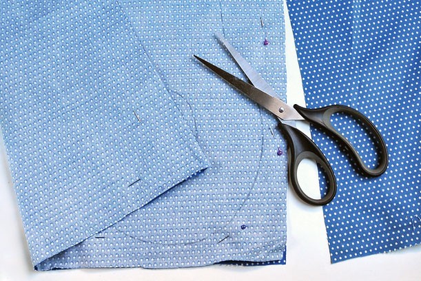 3. Вырежи прямоугольник с выкройкой, оставив ткань сколотой.