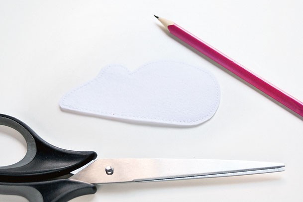 10. Из белого фетра выкрои два силуэта мышки, сшей их по лицевой стороне, отступая от края 0,3 см.