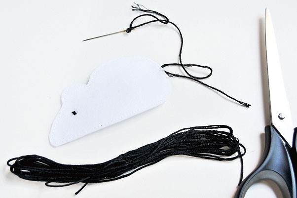 11. Из ниток мулине сделай хвостик. Ими же вышей глазки.