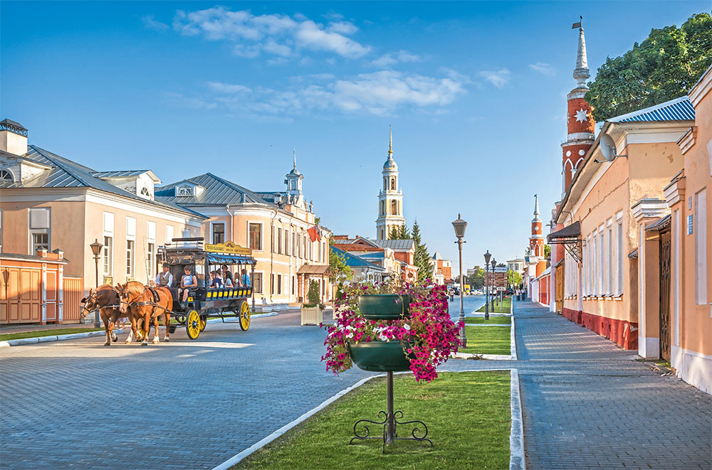 Старинный купеческий город с Кремлем, уютными улочками и домиками с резными наличниками. По центру города гуляет городовой, как из позапрошлого века, и ездит конный омнибус. А количество любопытных музеев тут просто немыслимое. Ажиотаж у туристов вызывает музей «Коломенская пастила». Еще бы, здесь не только расскажут о лакомстве, но и дадут попробовать. По такой же схеме проходит экскурсия в «Калачной» (калач с чаем входит в стоимость билета). Дамам рекомендуем заглянуть в музей «Душистыя радости», где можно узнать много интересного о мыловарении, парфюмерии и гигиене России XIX века. Вот лишь несколько тем: из чего раньше делали мыло, какие косметические секреты были у наших прабабушек и как проходил их утренний туалет. На память можно приобрести себе кусочек туалетного мыла, в котором спрятана схема для вышивки рукодельного сувенира.