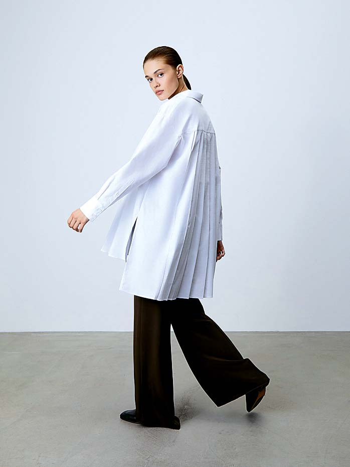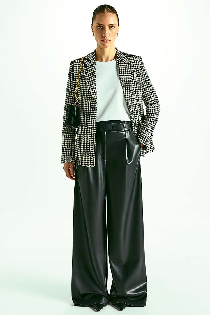 Палаццо могут скорректировать фигуру. Если у тебя полные ноги, то визуально это будет незаметно под широкими штанинами. Также если у тебя диспропорция туловища из-за чересчур широких плеч, то свободные брюки помогут создать эффект песочных часов, останется дело за малым – подчеркнуть поясом талию.