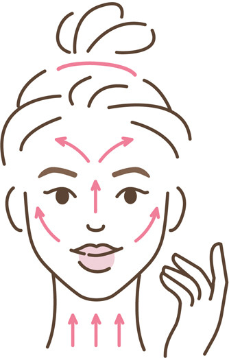 Двигайся по массажным линиям снизу вверх, чтобы усилить скорость течения лимфы: от центра лба наверх, от подбородка вверх к мочкам ушей, от скул к вискам. Если беспокоят горизонтальные морщины на лбу, как бы «отодвинь» скребком их в сторону.